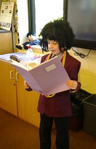 In Year 3 we are currently using The BFG by Roald Dahl as our class text and we are producing some “fantabulous” English work inspired by this. Today we hot-seated Sophie by different children dressing up in a wig and necklace, with others in the class posing “her” questions to answer about her experiences. The boys then wrote question poems as if they were Sophie including questions such as: Where are you taking me? What do snozzcumbers taste like? Can you really hear ladybirds’ footsteps? Some then had the opportunity to perform their poems as if they were Sophie, dressed in the wig and necklace. We really love English in Year 3!